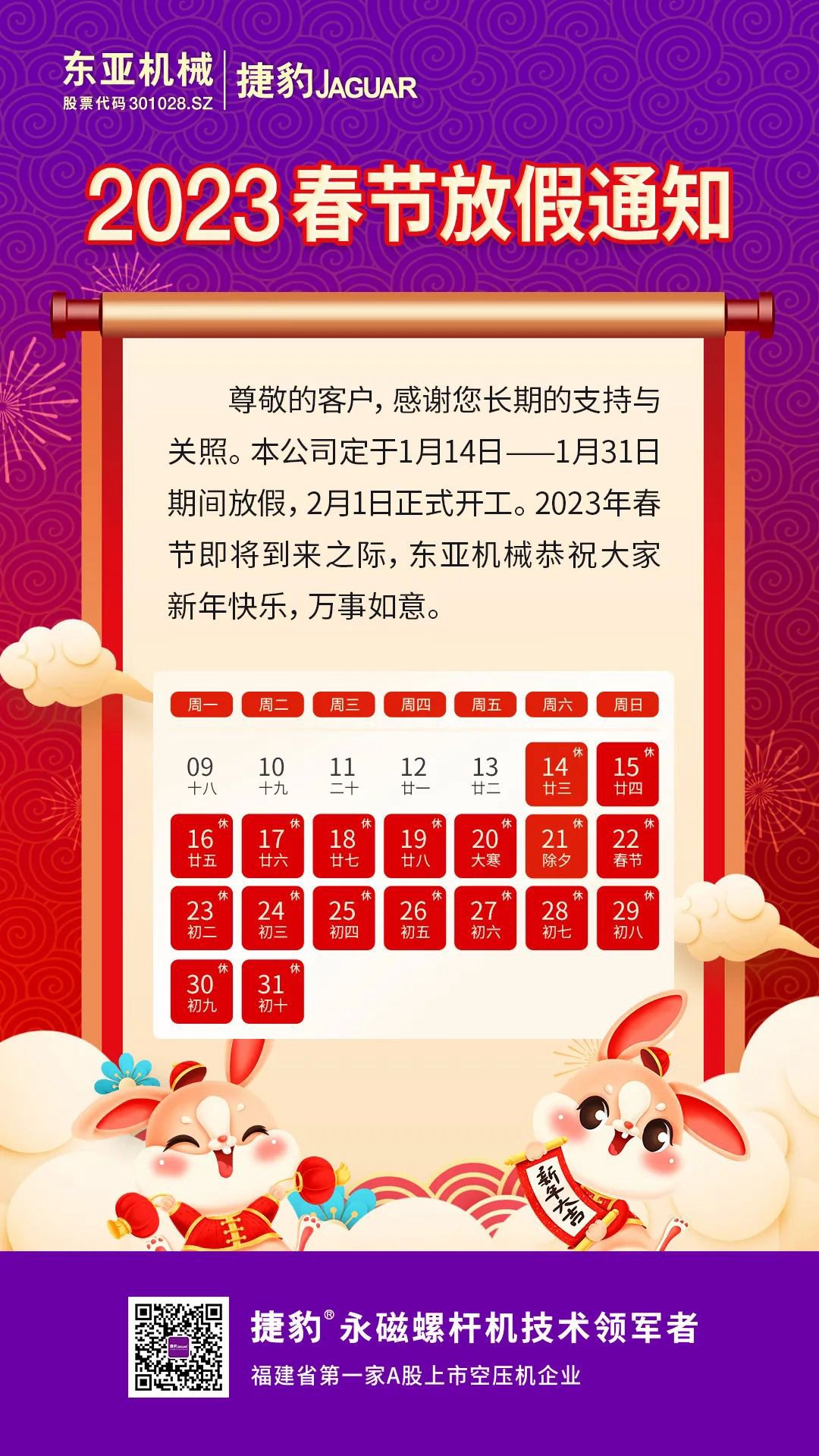 兔年大吉 | 2023年?yáng)|亞機(jī)械春節(jié)放假通知
